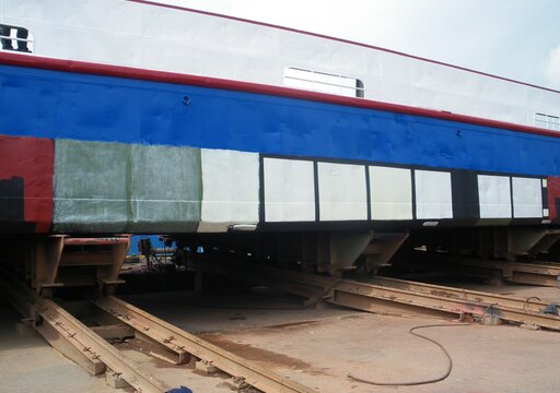 In the final test phase, the most promising coatings will be tested in real-life field tests on commercial vessels. For this purpose, coastwise operating ships are favoured, as they are usually dry-docked annually and can then be coated and inspected one year later. However, the exact time interval of the routine dockings must be observed. Depending on the type of coating and the customer's wishes, Dr. Brill und Partner organises suitable ferries or authority vessels with suitable docking dates, accompanies the application of the test patches by a specialist company i.a. with regard to substrate pre-treatment. Inspections can be carried out sporadically at irregular intervals by inwater survey, a dock inspection usually is only possible after approx. 12 months in the spring of the following year.